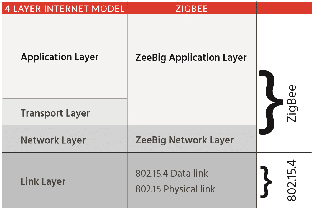 As shown in the chart below, the ZigBee specification builds upon the 802.15.4 link layer and supports the remaining layers. ZigBee supports multiple network topologies, including point-to-point, point-to-multipoint, and mesh networks. The specification offers features like ZigBee Device Objects and ZigBee Cluster Libraries. The ZigBee Cluster Libraries define what kind of product the node is (light switch, power meter, remote control, etc.), what capabilities it has, security keys in use, routing tables, and more. The standard is completely defined and reinforced through a certification program, resulting in good interoperability between ZigBee devices made by different vendors. A company must be a member of the ZigBee Alliance before it can bring a ZigBee product to market or use the ZigBee logo in association with an IoT system.